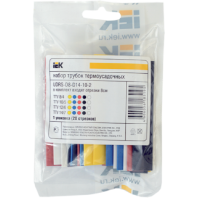IEK Набор трубок термоусаживаемых ТТУ 8/4, 10/5, 12/6, 14/7 З, С, К, Ч, Б (20х8см/упак)