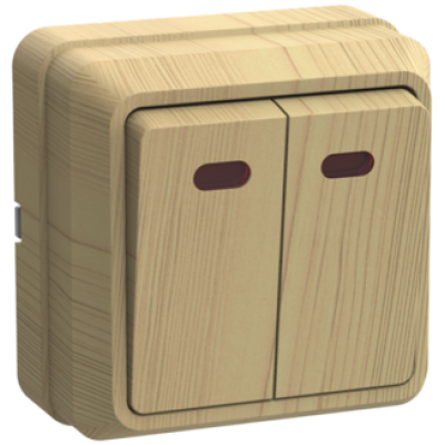 IEK Выключатель 2-клавишный для открытой установки с индикацией ВС20-2-1-ОС 10А ОКТАВА сосна