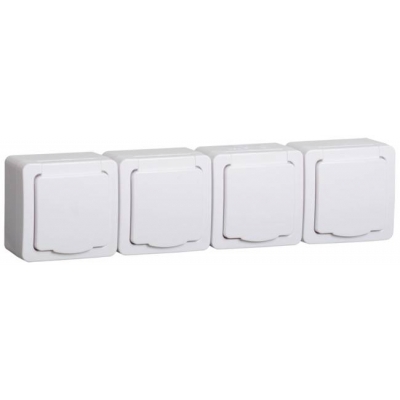 IEK Розетка 4-местная для открытой установки РСб24-3-ГПБб с заземляющим контактом IP54 ГЕРМЕС PLUS белый