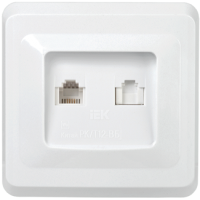 IEK Розетка 2-местная компьютерная и телефонная РК/Т12-ВБ RJ11/RJ45 ВЕГА белый