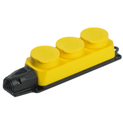IEK Розетка (колодка) 3-местная РБ33-1-0м с защитными крышками IP44 ОМЕГА жёлтая
