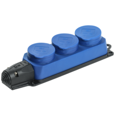 IEK Розетка (колодка) 3-местная РБ33-1-0м с защитными крышками IP44 ОМЕГА синяя