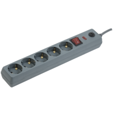 IEK Сетевой фильтр СФ-05К-выкл. 5 мест 2Р+PЕ/5метров 3х1мм2 16А серый