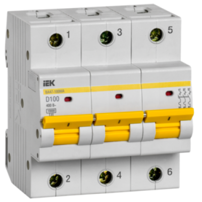 IEK Автоматический выключатель ВА47-100МА без теплового расцепителя 3P 100А 10кА D