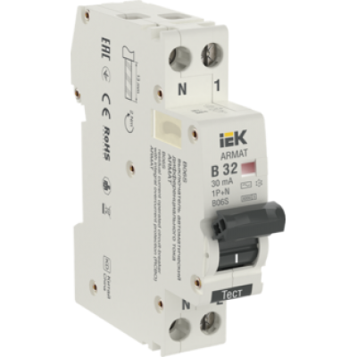 IEK ARMAT Автоматический выключатель дифференциального тока B06S 1P+NP B32 30мА тип A (18мм)