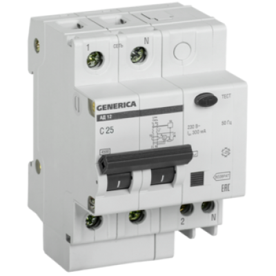 IEK Дифференциальный автоматический выключатель АД12 2Р 25А 30мА GENERICA