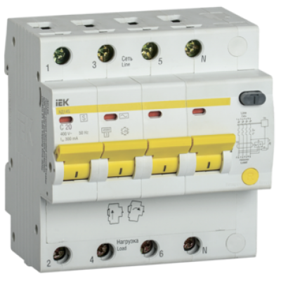 IEK Дифференциальный автоматический выключатель АД14S 4Р 20А 300мА