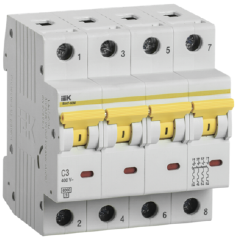 IEK Автоматический выключатель ВА47-60M 4Р 3А 6кА С - MVA31-4-003-C