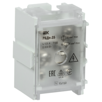 IEK Блок распределительный проходной РБДп-35 125/50А на DIN-рейку (1х35-4х6мм2)