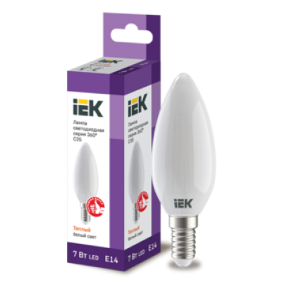 IEK Лампа светодиодная C35 свеча матовая 7Вт 230В 3000К E14 серия 360°