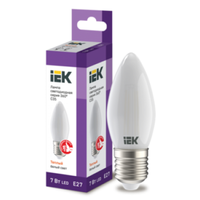 IEK Лампа светодиодная C35 свеча матовая 7Вт 230В 3000К E27 серия 360°