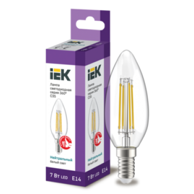 IEK Лампа светодиодная C35 свеча прозрачная 7Вт 230В 4000К E14 серия 360°
