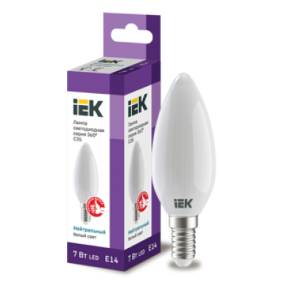 IEK Лампа светодиодная C35 свеча матовая 7Вт 230В 4000К E14 серия 360°
