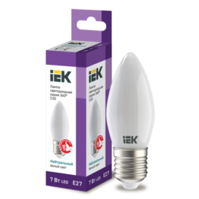 IEK Лампа светодиодная C35 свеча матовая 7Вт 230В 4000К E27 серия 360°